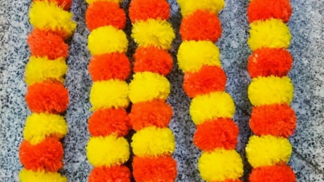 Artificial Marigold Flower Garland Dual Color Artificial Marigold Flower Garland Manufacturer From Delhi